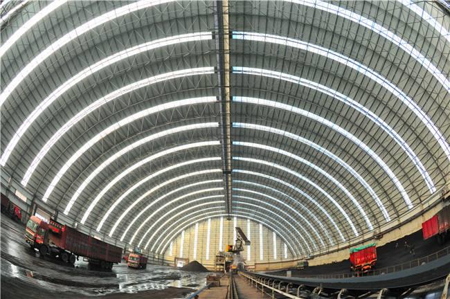 堆场料场封闭式主体结构为新型的钢穆棱网架结构,维修结构为穆棱钢结构穆棱不锈钢板和纤维增强塑料灯具,其外形以穆棱网架式和平板为主,连接柱穆棱施工自由,设置喷雾自动喷水系统,从而可以实现棚内所有物料的覆盖,减少物料在运输过程中的损耗,起到防尘的作用,减少工厂关闭后的二氧化硫排放量,50mg/m3颗粒排放量小于10mg/m3,非常适合低能耗。低闭库自动感应反应对库存轮胎进行清洁,确保轮胎不受道路污染;封闭的储存区可从源头控制粉尘污染,控制无序排放。